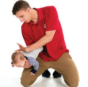 - If the object has not come out, turn the baby face-up, while you support the head.